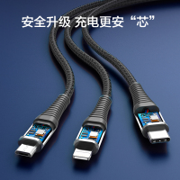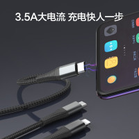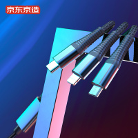 京东京造 三合一充电线快充多功能适用苹果Type-c安卓手机多头iPhone14/13/12小米华为一拖三车载 黑