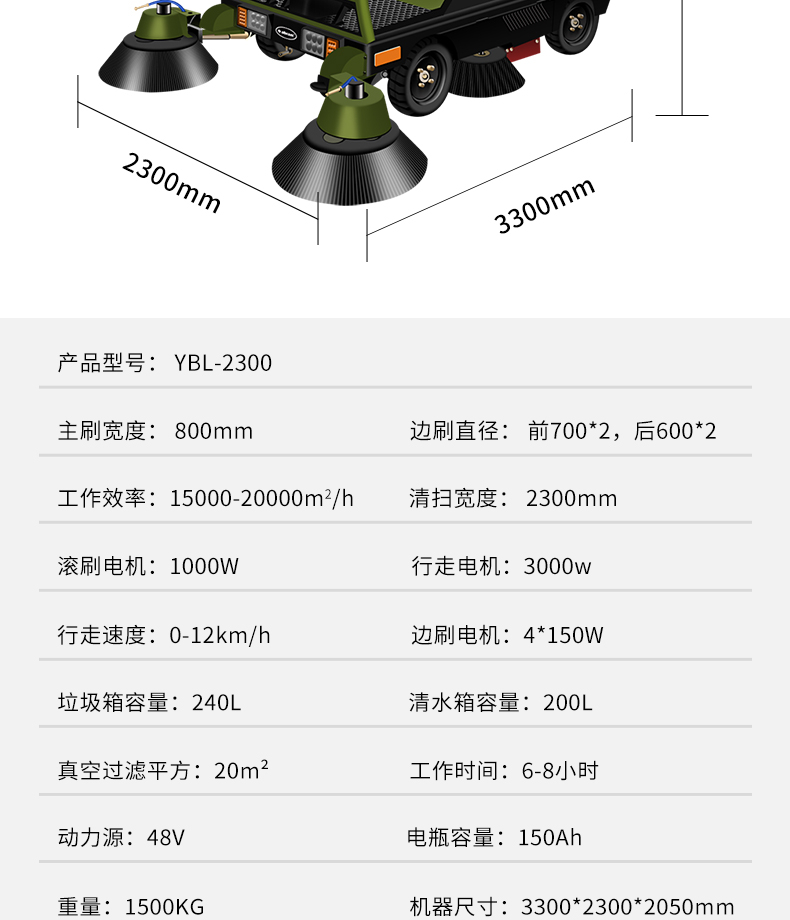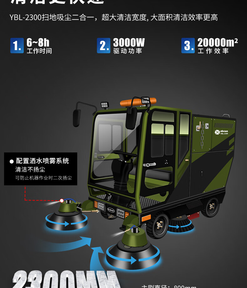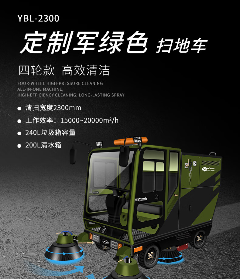 亚伯兰(abram)YBL-2300大型扫地车扫路车工厂商用市政环卫清扫马路环卫保洁驾驶式扫地机