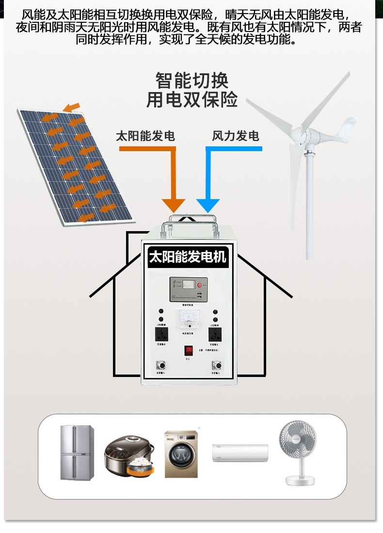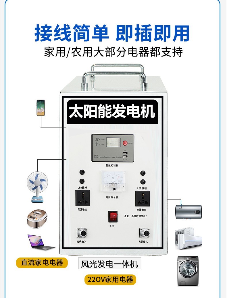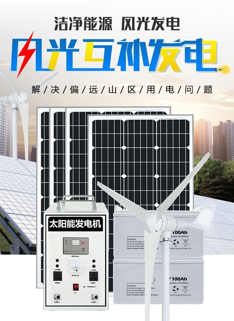 杰亚森(JieYaSen)风光互补光伏发电系统全套220v发电板家用户外风力发电设备风能发电