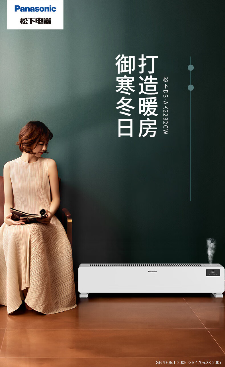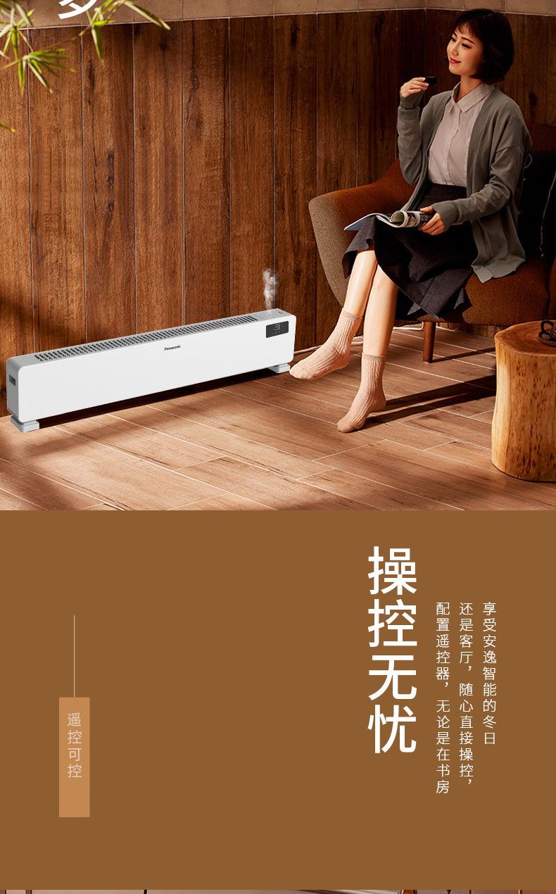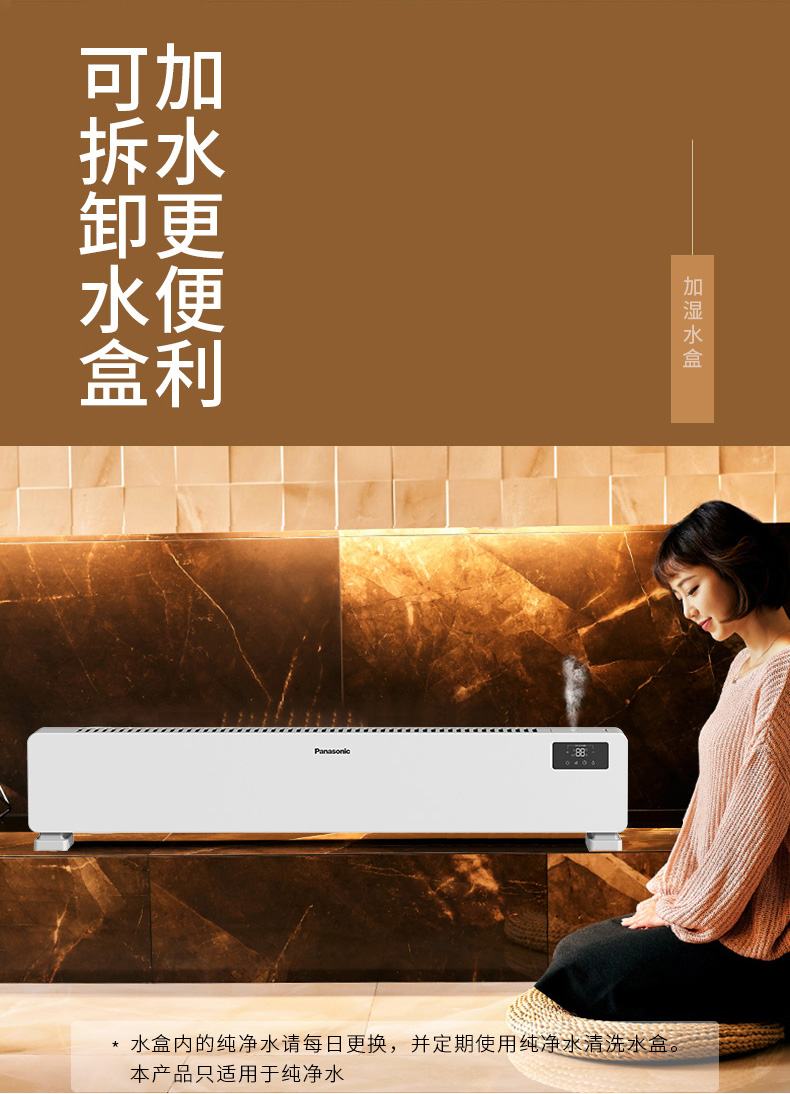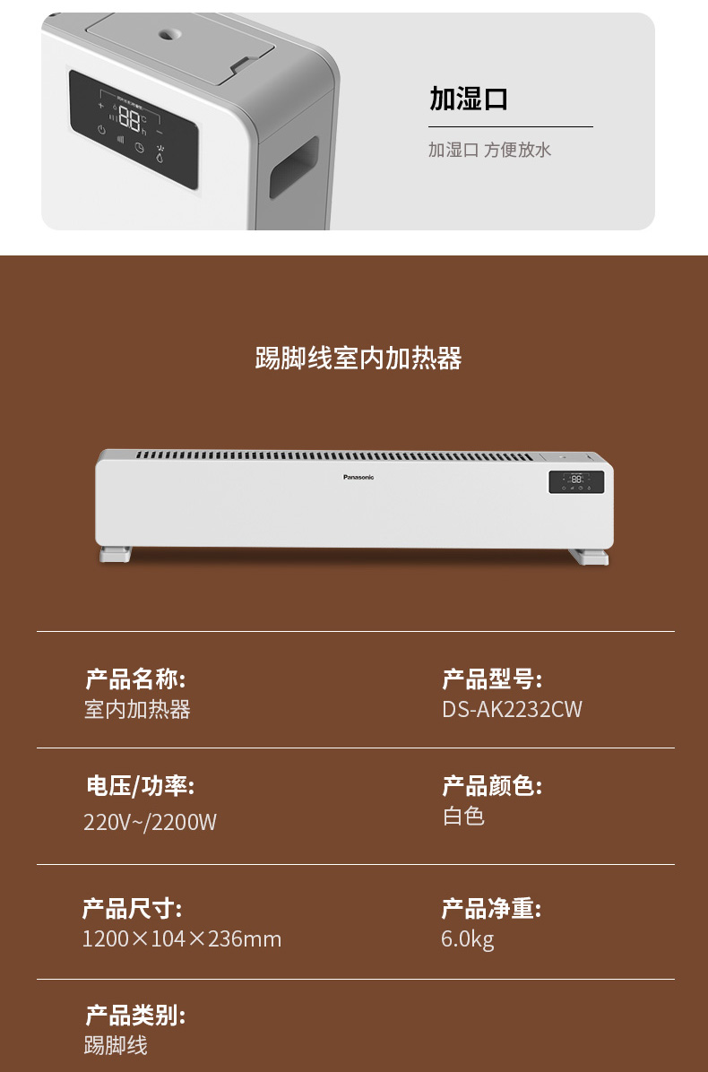 松下(Panasonic)石墨烯踢脚线取暖器家用智能控温防水电暖器加湿电暖气速热移动地暖 DS-AK2232CW