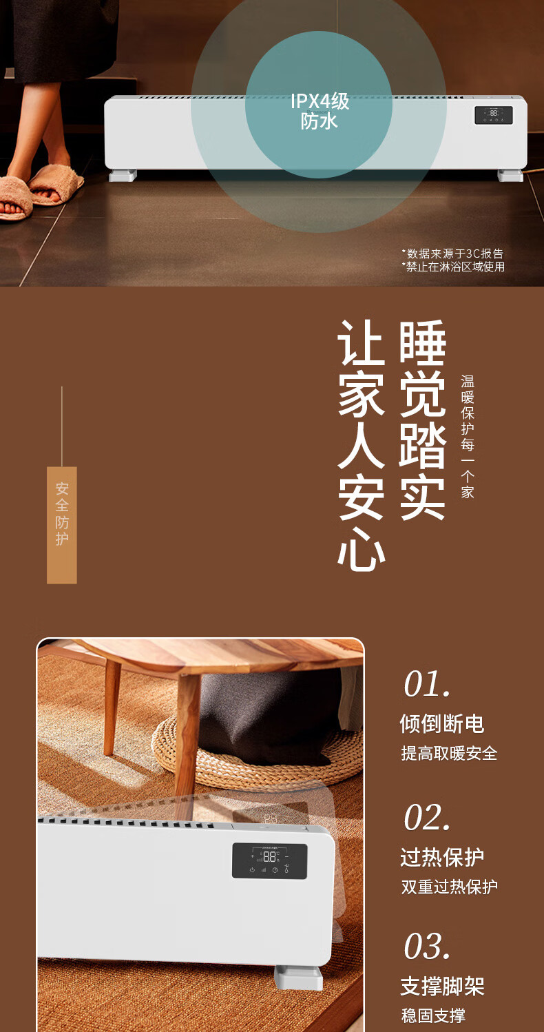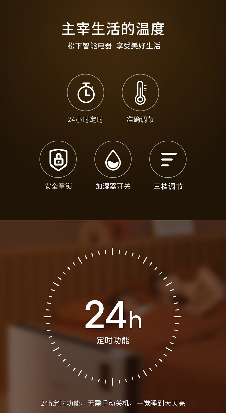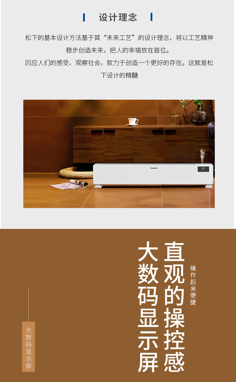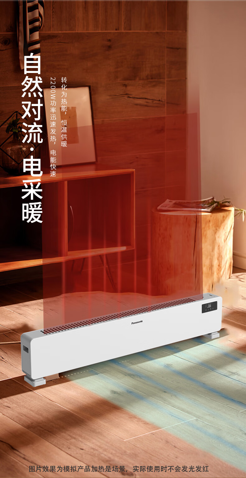 松下(Panasonic)石墨烯踢脚线取暖器家用智能控温防水电暖器加湿电暖气速热移动地暖 DS-AK2232CW