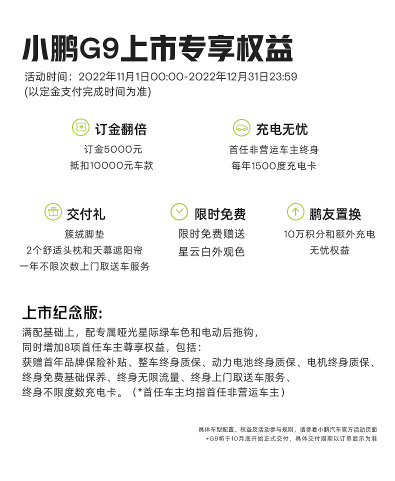 小鹏汽车G9下定翻倍定金5000元抵扣10000元