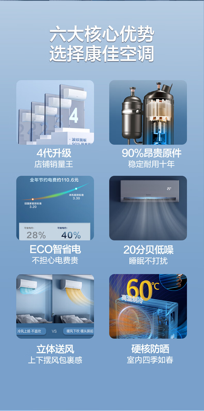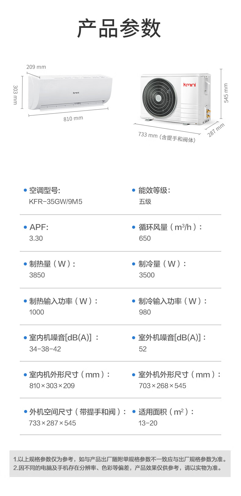 康佳(kmini) 1.5匹 新能效 快速冷暖 一键节能 壁挂式卧室 空调挂机 KFR-35GW/9M5