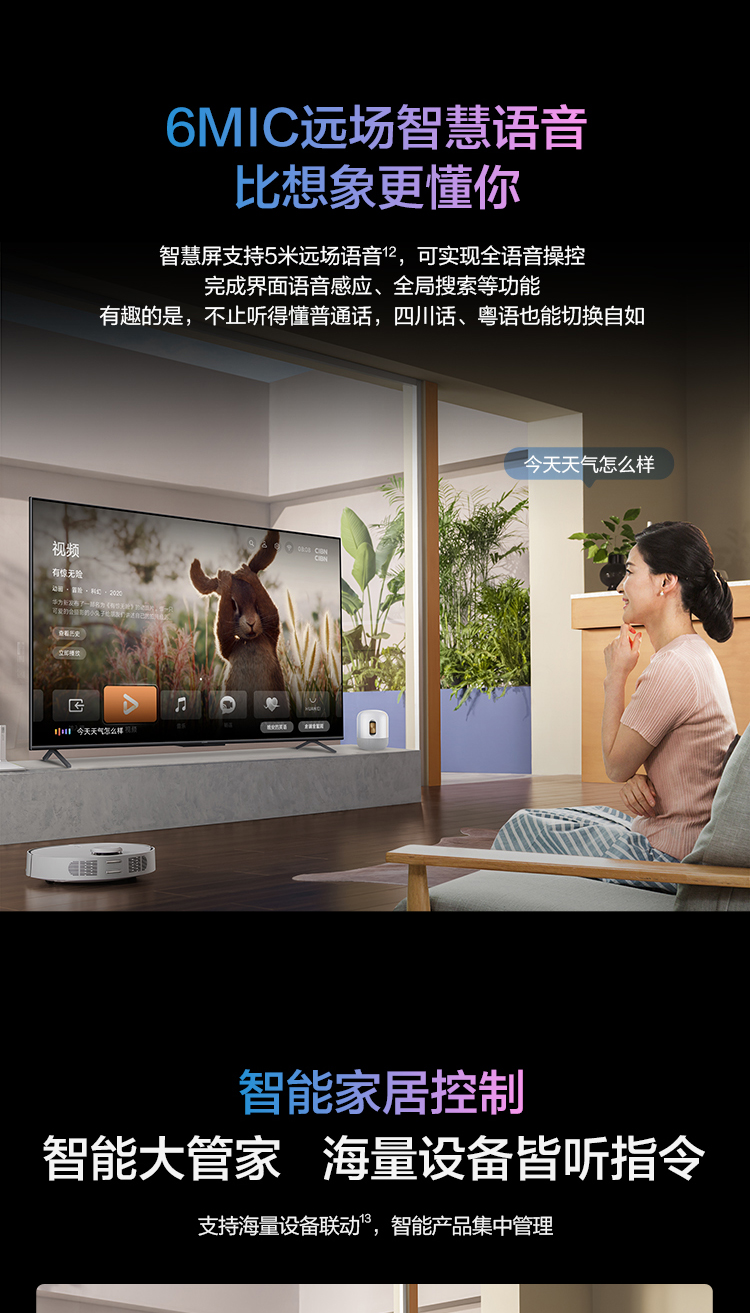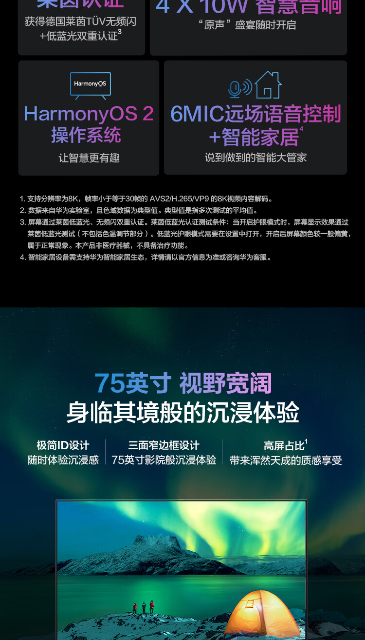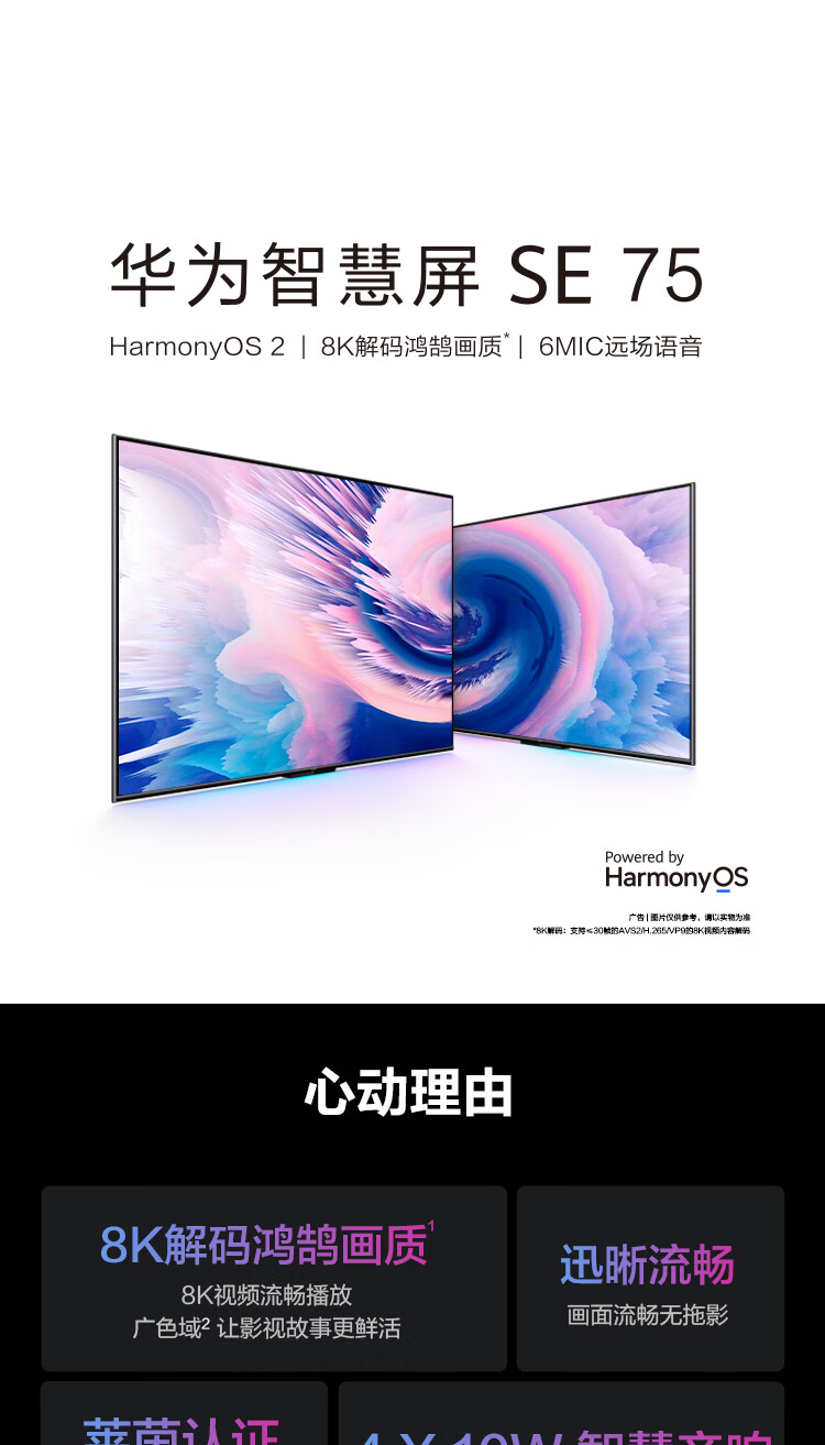 华为智慧屏 SE 75英寸 超薄电视 8K解码鸿鹄画质 4K超高清MEMC智能液晶电视HD75DESA 2+16GB【HarmonyOS 2】