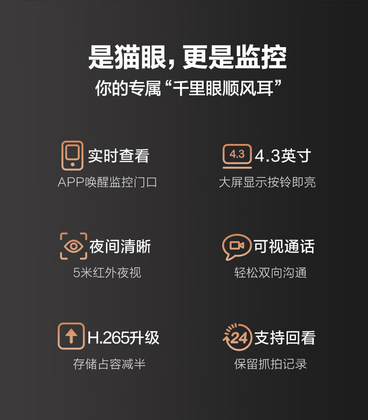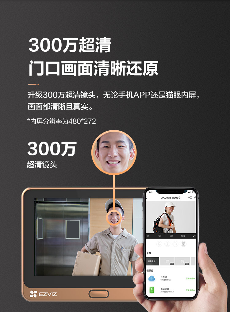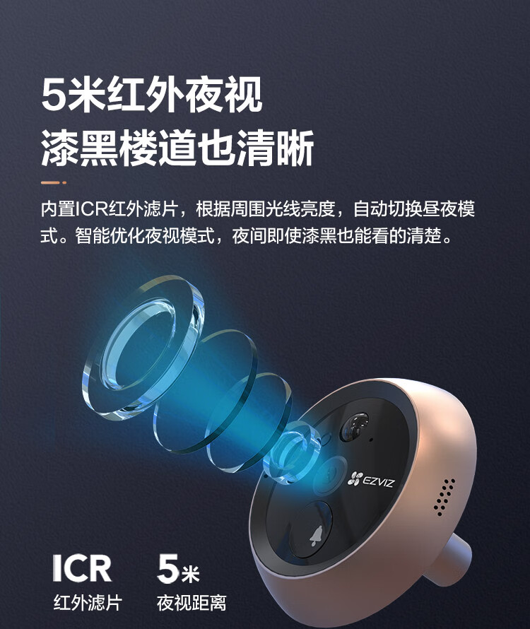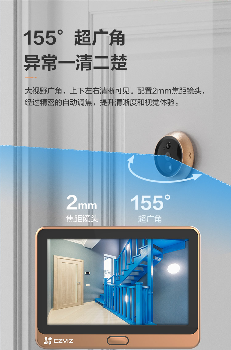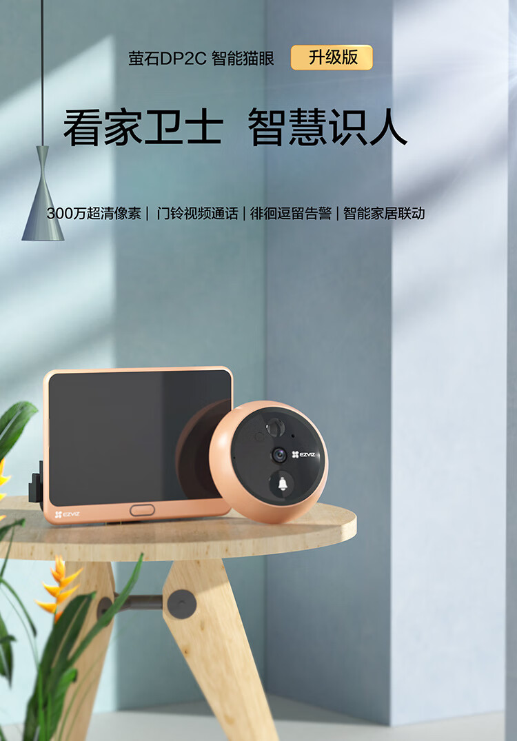 萤石(EZVIZ)DP2C3MP智能猫眼摄像头300万超清电子猫眼可视门铃防盗门监控远程可视通话