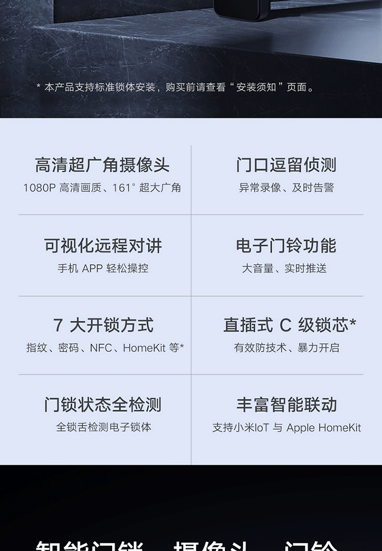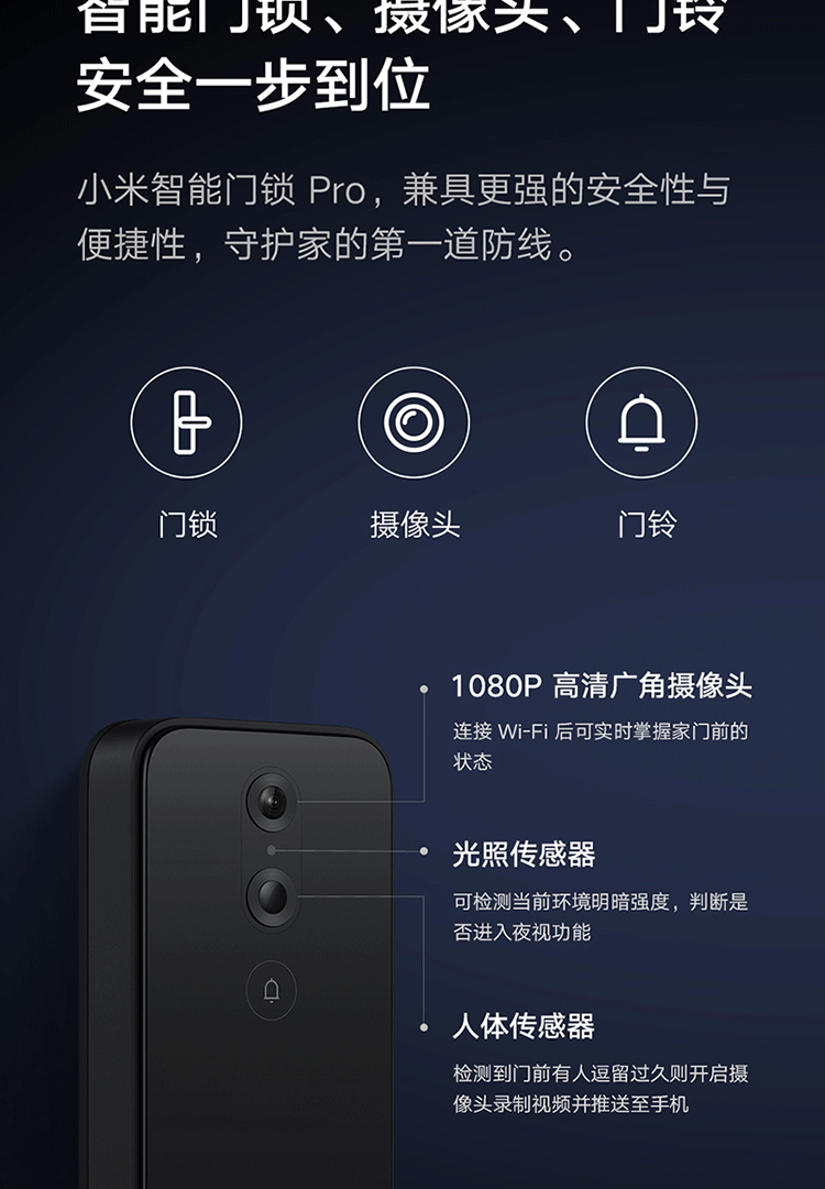 小米(MI)智能门锁Pro猫眼功能可视对讲指纹锁电子锁Pro智能门锁