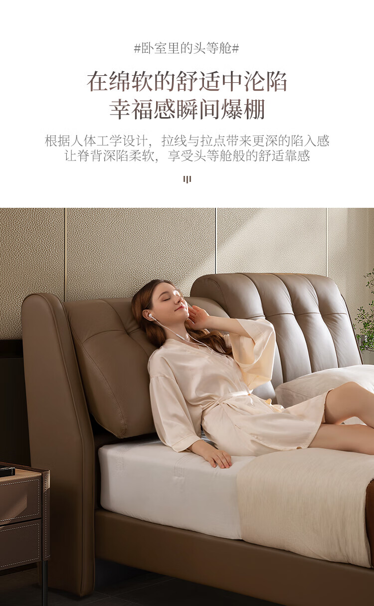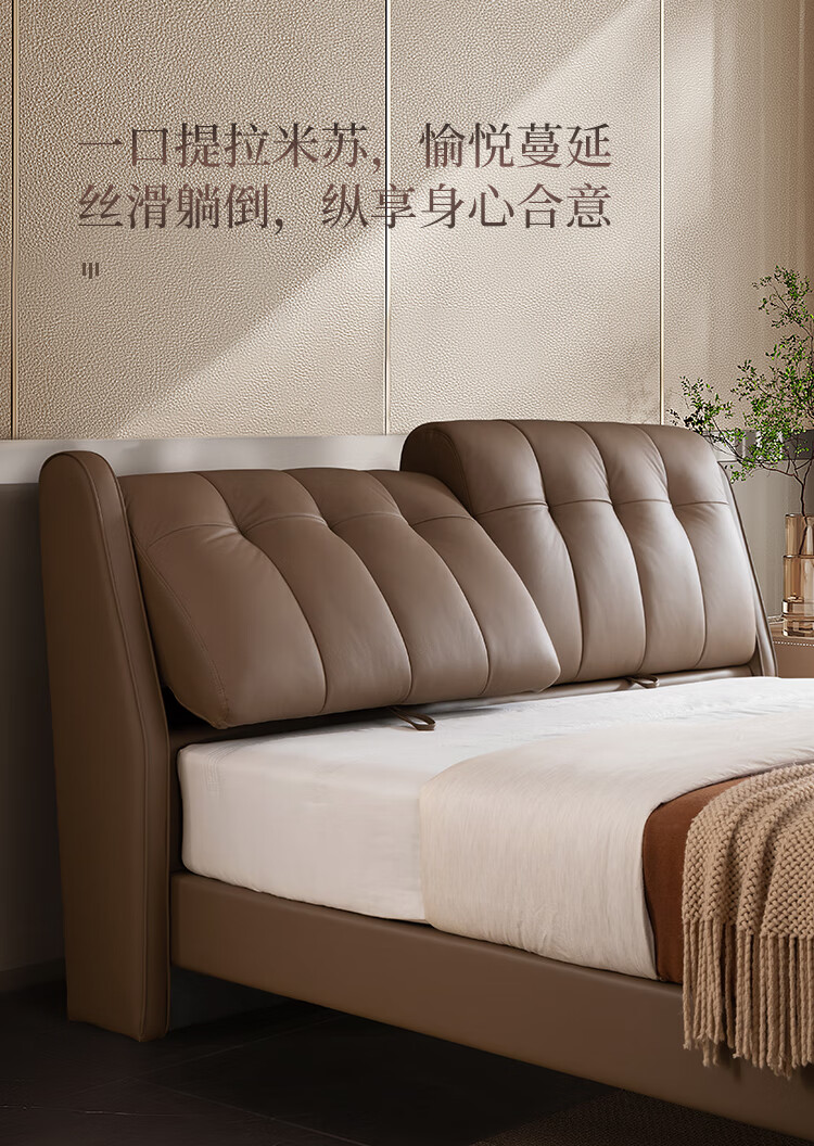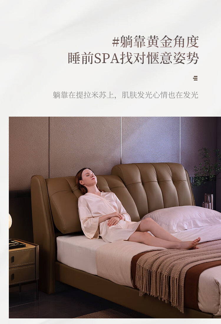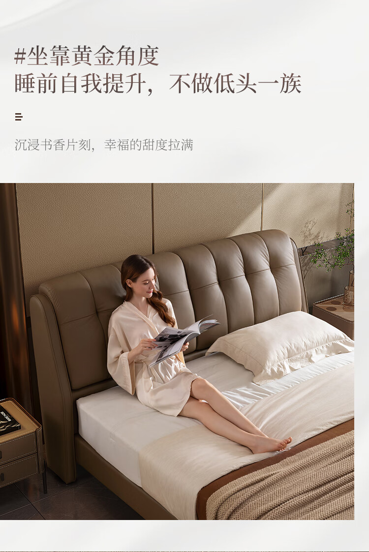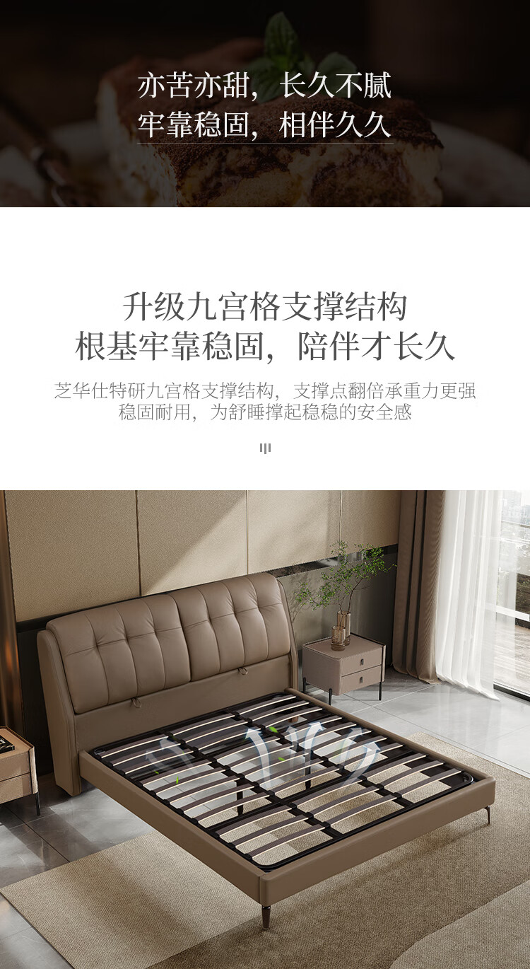芝华仕真皮床意式轻奢简约主卧双人软包婚床C208款可可棕1.8米送床垫