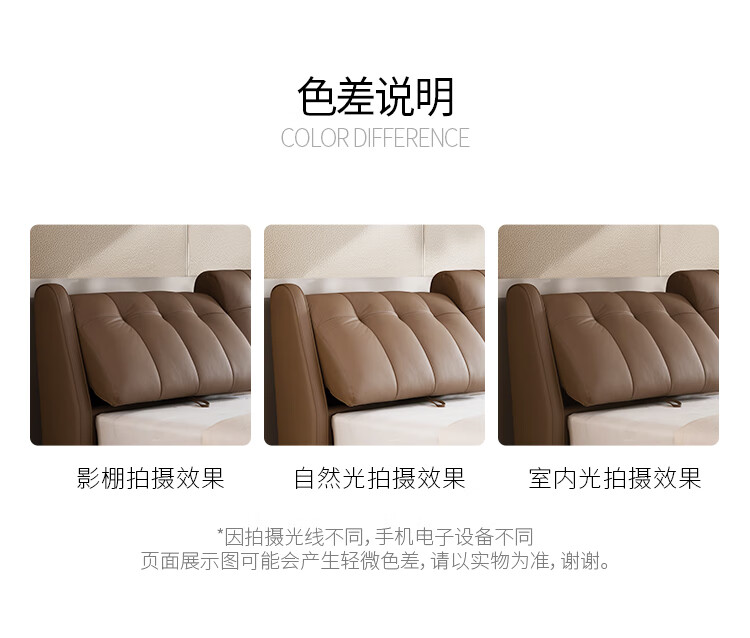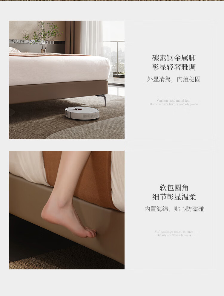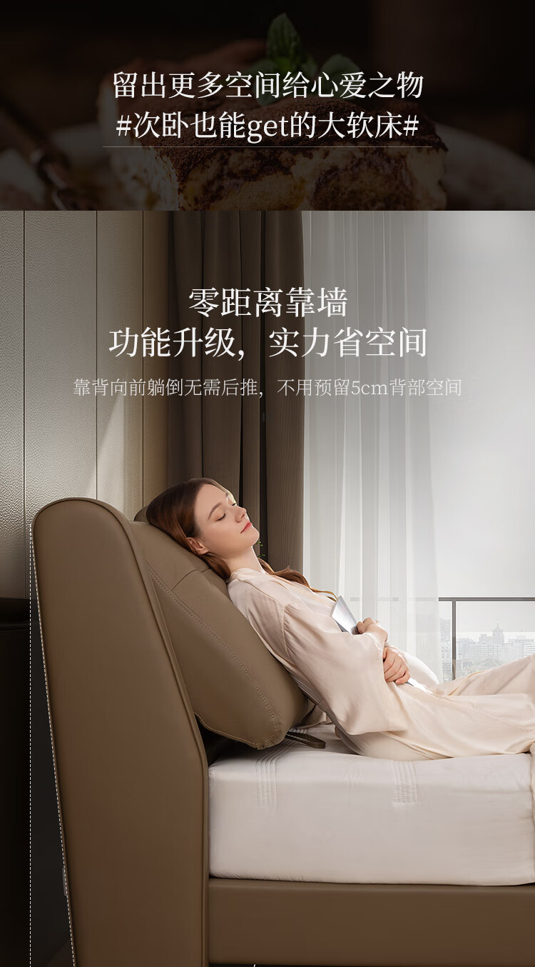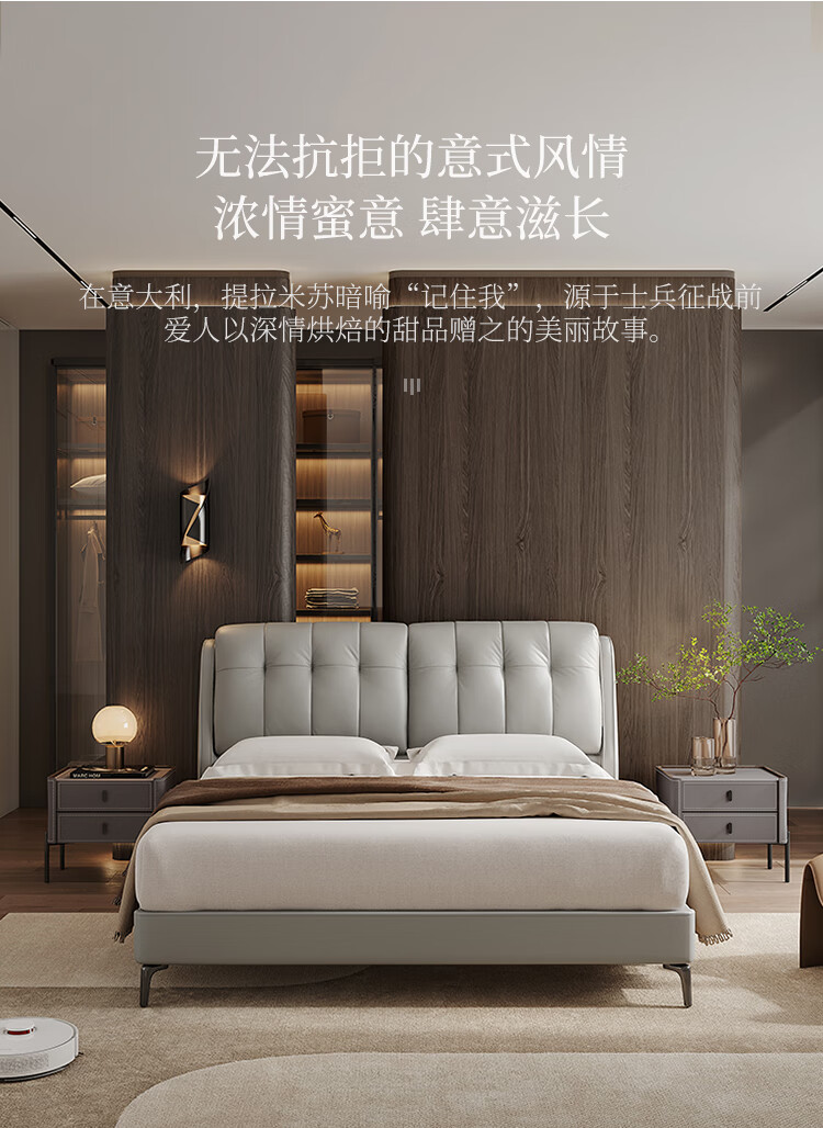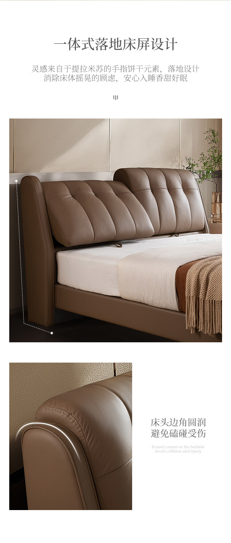 芝华仕真皮床意式轻奢简约主卧双人软包婚床C208款可可棕1.8米送床垫