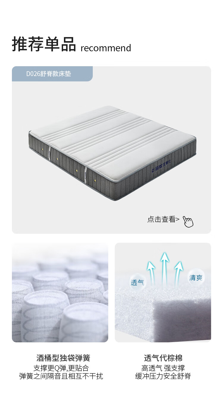 全友家居 3D椰棕床垫 天然乳胶弹簧床垫 抑菌防螨席梦思床垫23cm厚 1.8米*2米105111K