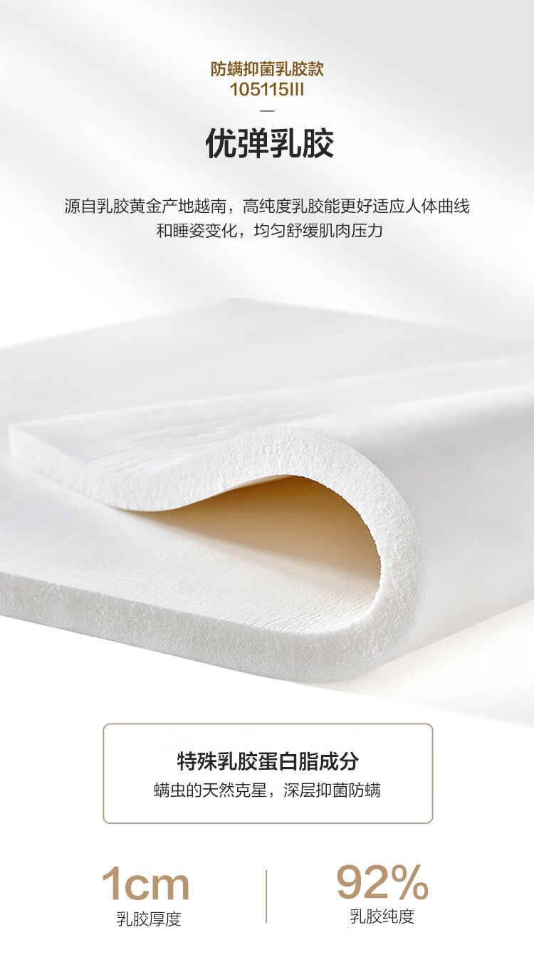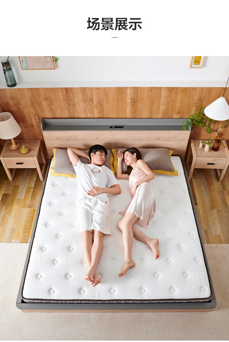 全友家居 泰国进口乳胶床垫软硬适中 5区独立袋装弹簧双人床垫子厚约21cm 1.8米*2米105190-3