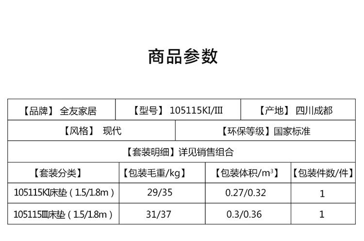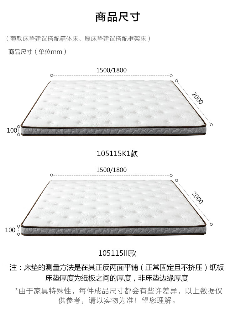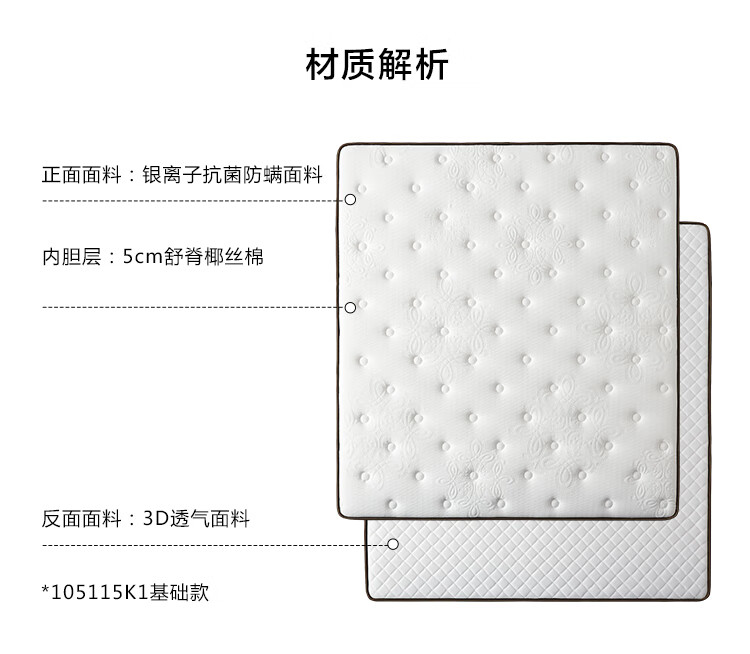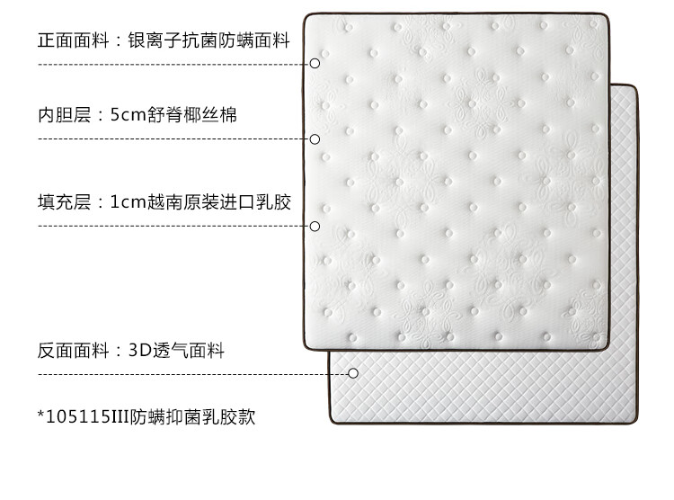 全友家居 3D椰棕床垫 天然乳胶弹簧床垫 抑菌防螨席梦思床垫23cm厚 1.8米*2米105111K