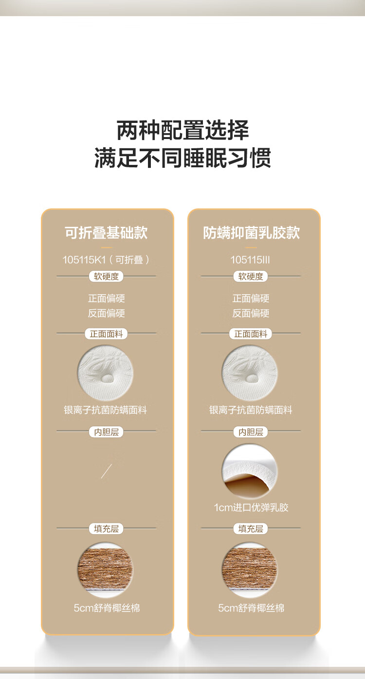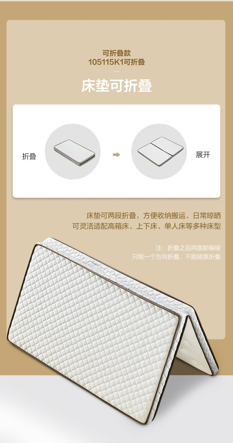全友家居 可折叠舒脊椰丝棉薄款床垫偏硬垫软硬正反两用105115K1
