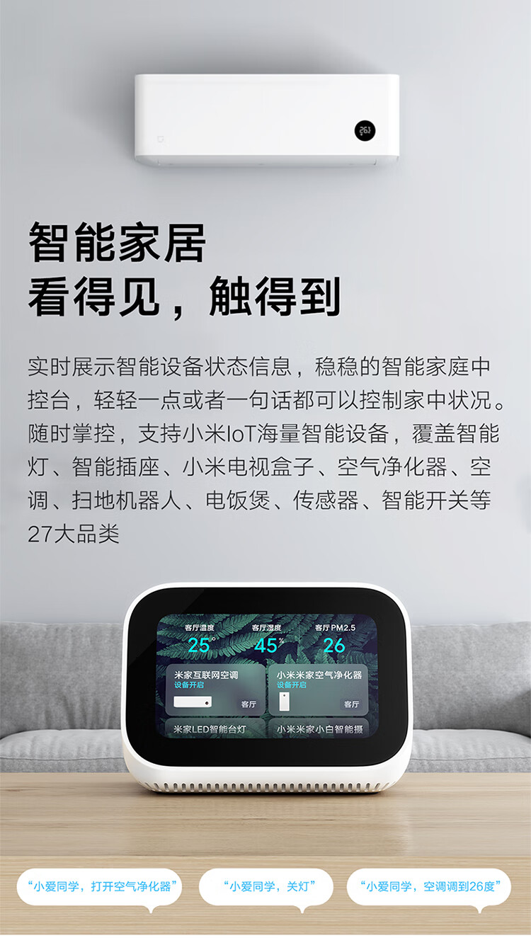 小米小爱触屏音箱 白色 音响 蓝牙音箱 智能音箱 小爱音响 语音电话 语音遥控智能家居