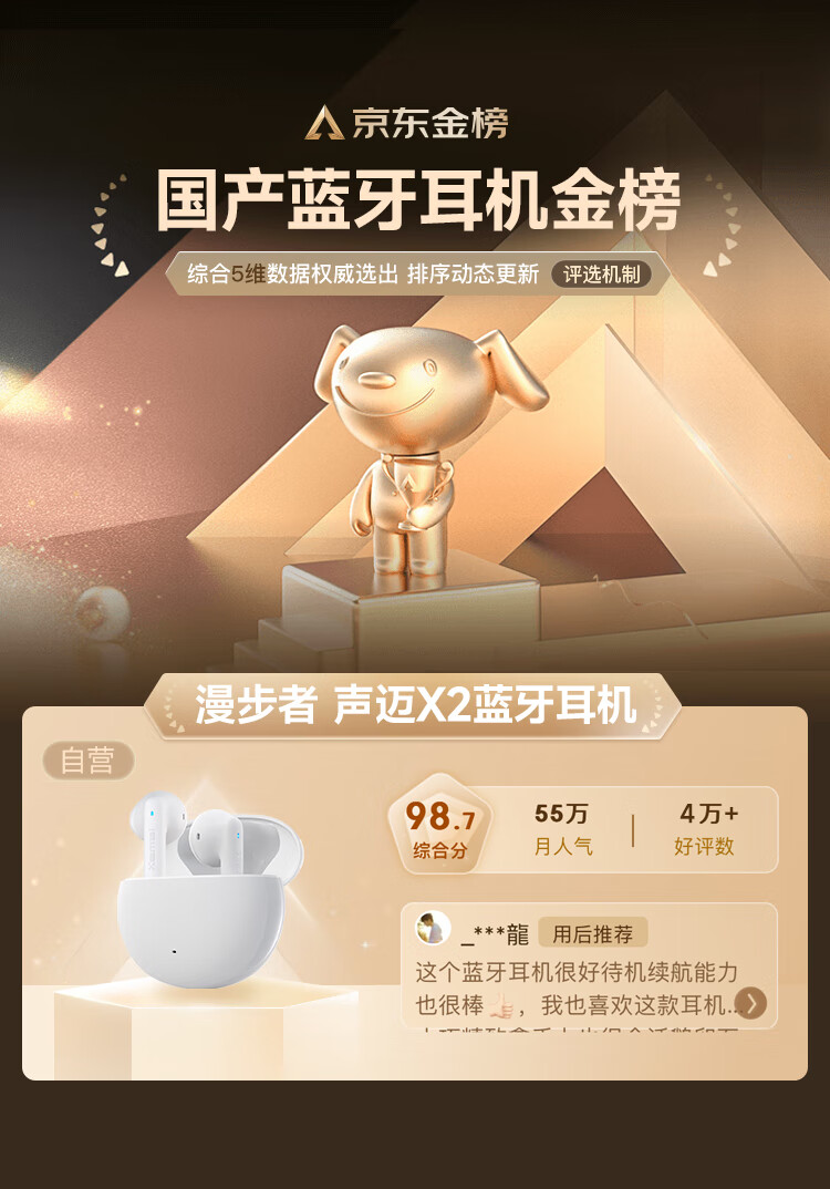 漫步者(EDIFIER)声迈X2 真无线蓝牙耳机 音乐运动手机耳机 蓝牙5.3 适用苹果华为小米手机 白色