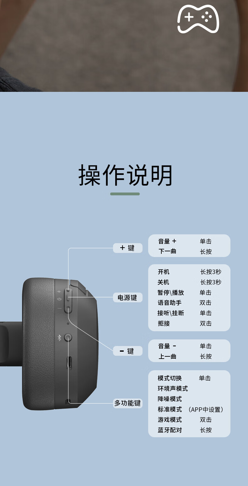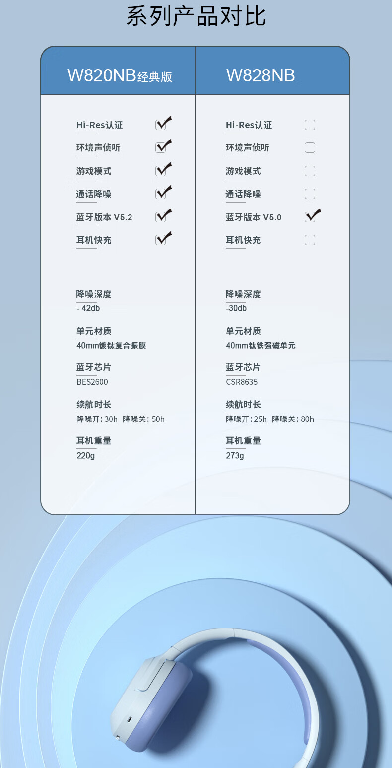 漫步者(EDIFIER)W820NB经典版 头戴蓝牙主动降噪耳机 金标认证 蓝牙5.2 手机电脑笔记本耳机 典雅灰