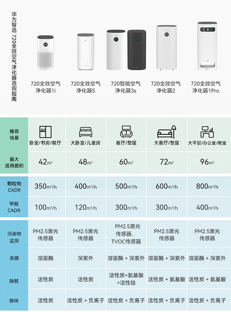 华为智选720空气净化器C400 除甲醛除菌除异味 除雾霾PM2.5 深紫外线灭菌 家用低噪小体积 鸿蒙智联