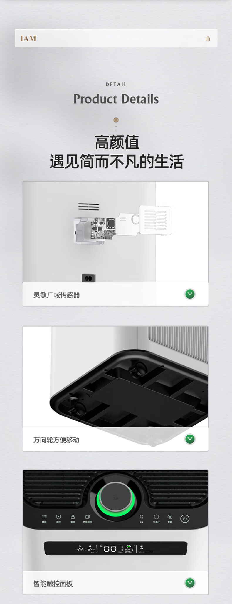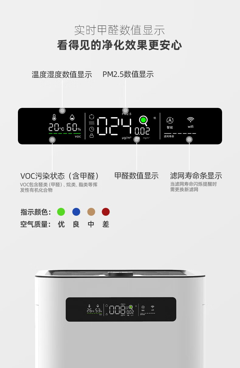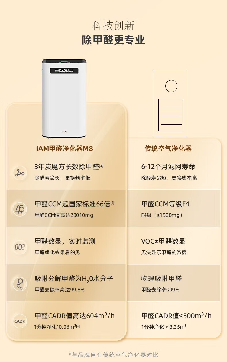 IAM空气净化器除甲醛雾霾细菌 家用负离子 空气净化机 甲醛数值显示 炭魔方3年长效分解甲醛M8
