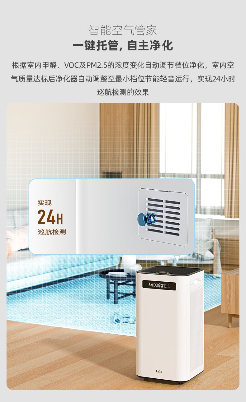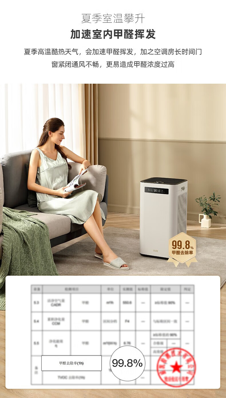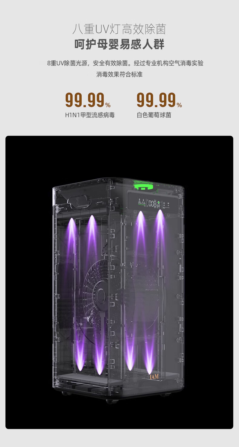 IAM空气净化器除甲醛细菌家用办公商用负离子甲醛数显旗舰尊享款X8 1500CADR