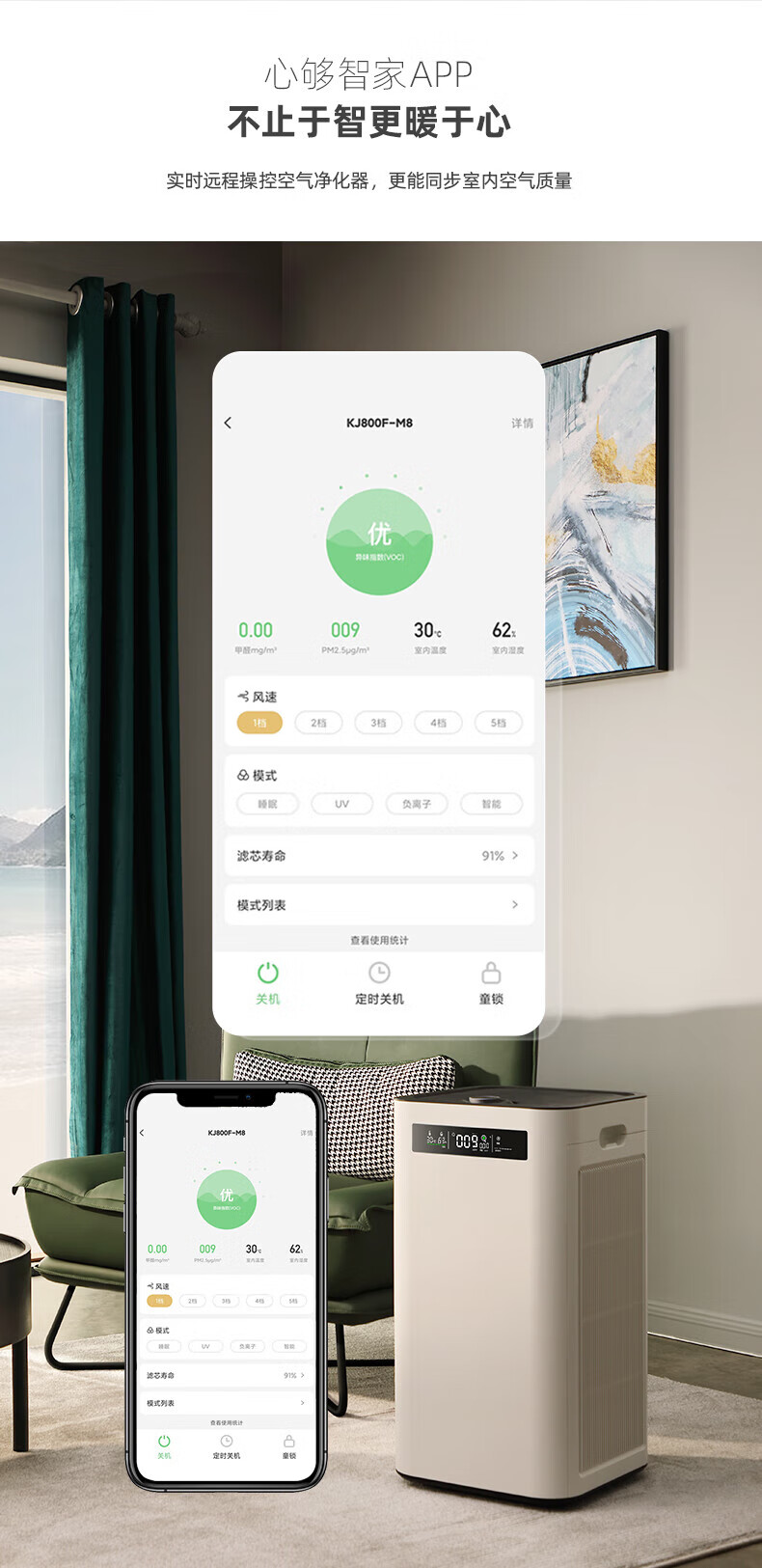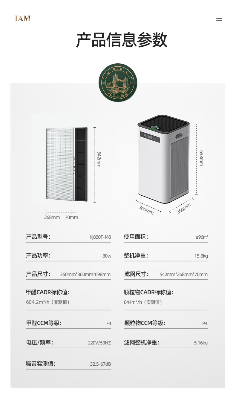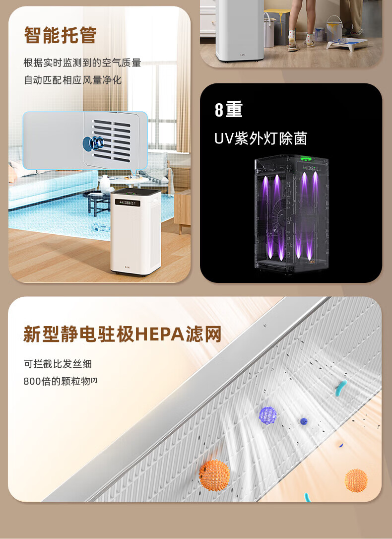 IAM空气净化器除甲醛细菌家用办公商用负离子甲醛数显旗舰尊享款X8 1500CADR